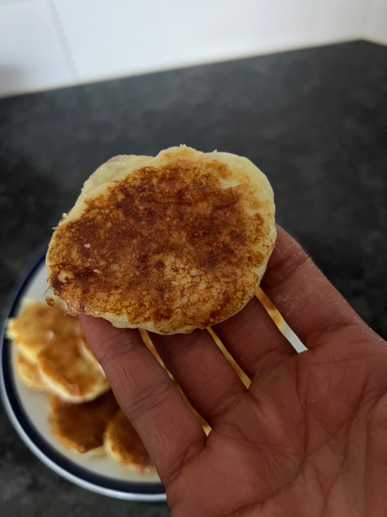 Heat a frying pan, add a few drops of olive oil, form 2-inch patties, and fry them until golden on both sides.